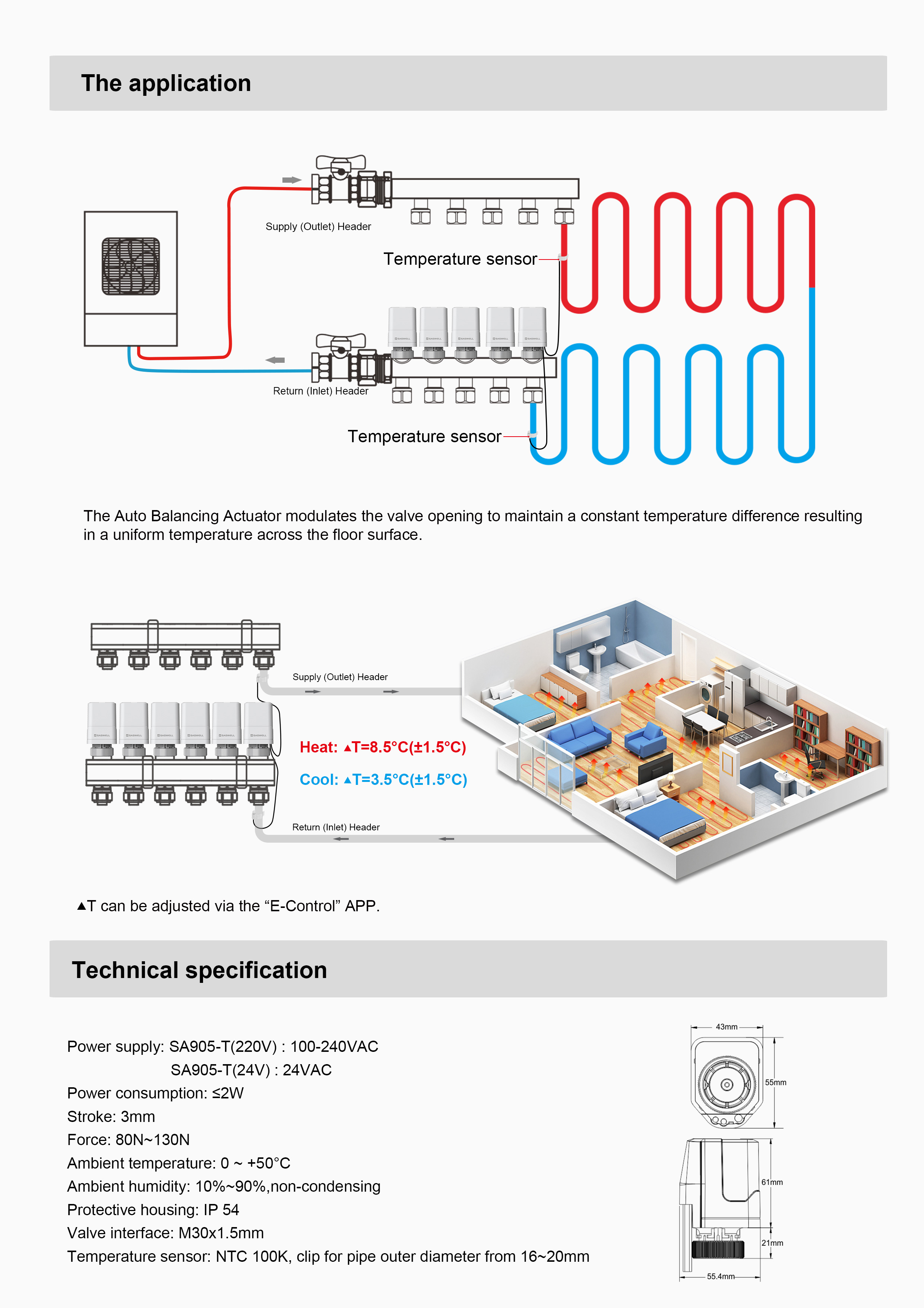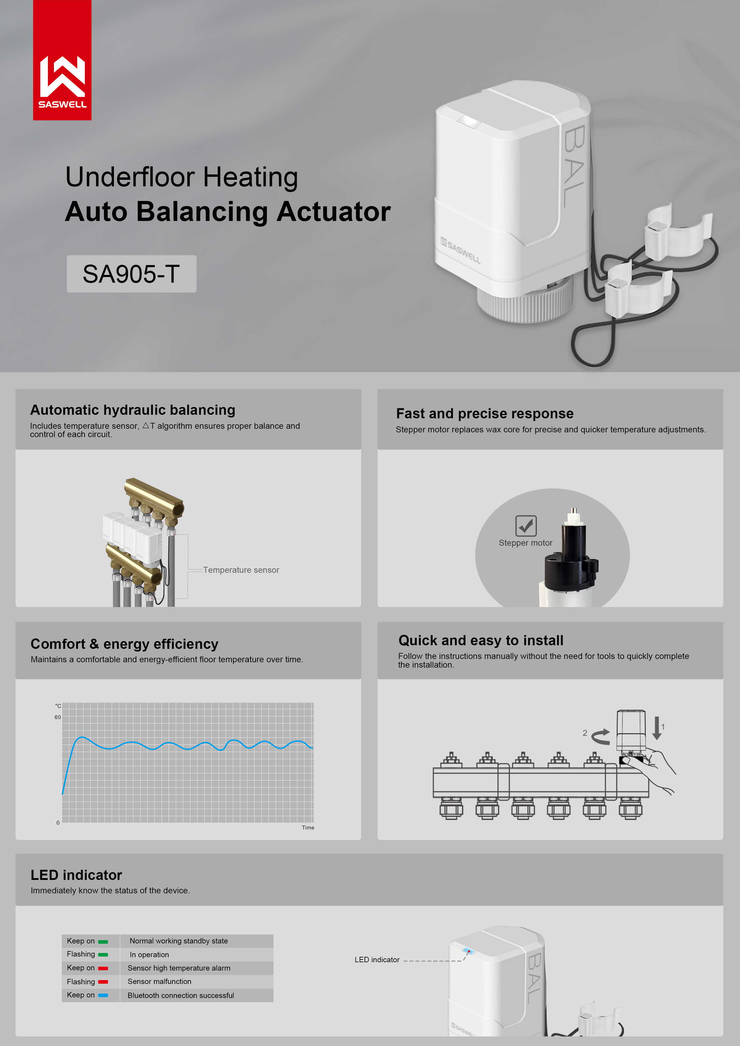 Специально разработанный для гидравлических систем UFH, привод SA905-T обеспечивает гидравлический баланс и равномерное распределение тепла, повышая как комфорт, так и энергоэффективность.