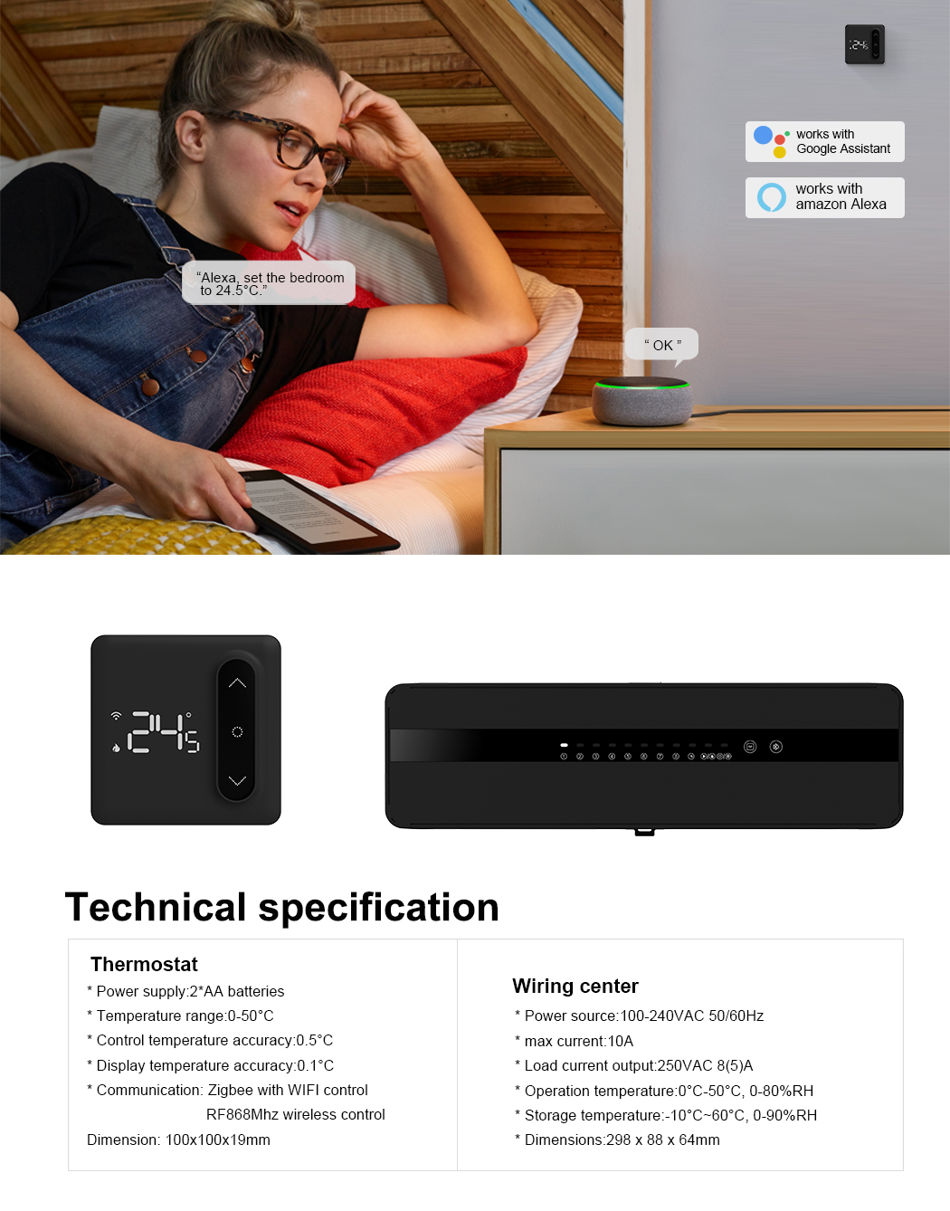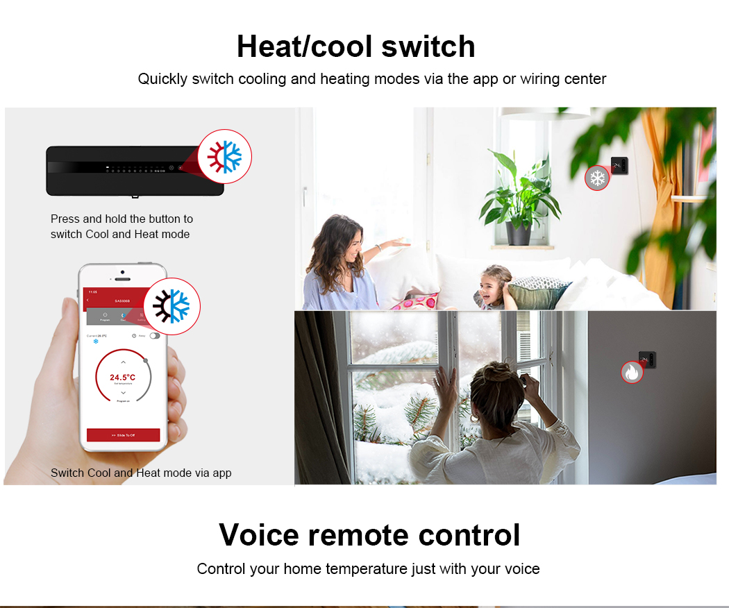 Беспроводная конструкция упрощает установку, делая её пригодной как для нового строительства, так и для проектов реконструкции. Пользователи могут дистанционно регулировать температуру в помещении через мобильное приложение, повышая удобство и делая жизнь более комфортной. Точный контроль температуры помогает оптимизировать энергопотребление и снизить эксплуатационные расходы.